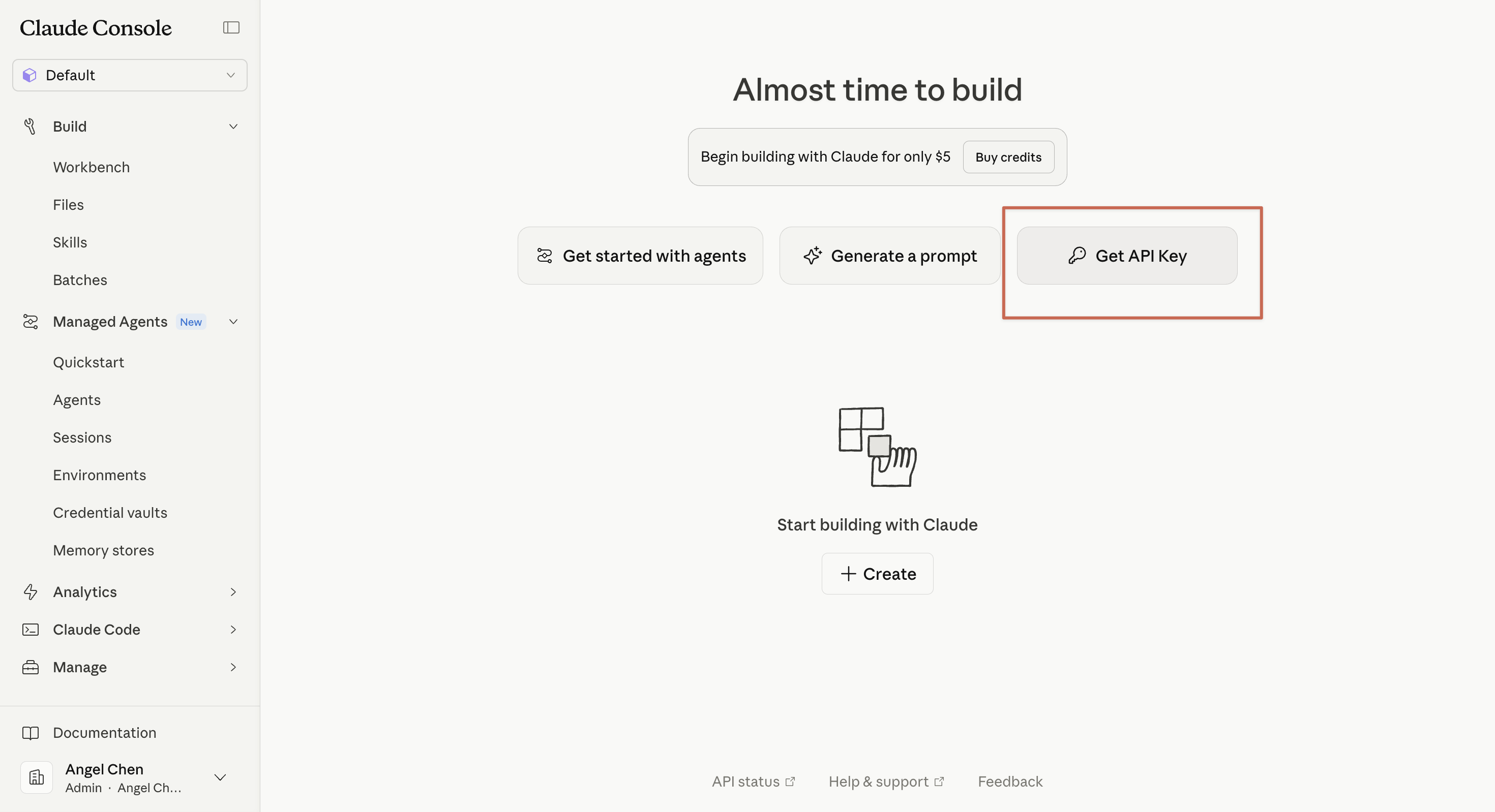 儲值完成後,回主畫面或左側選單 → Manage → API Keys。