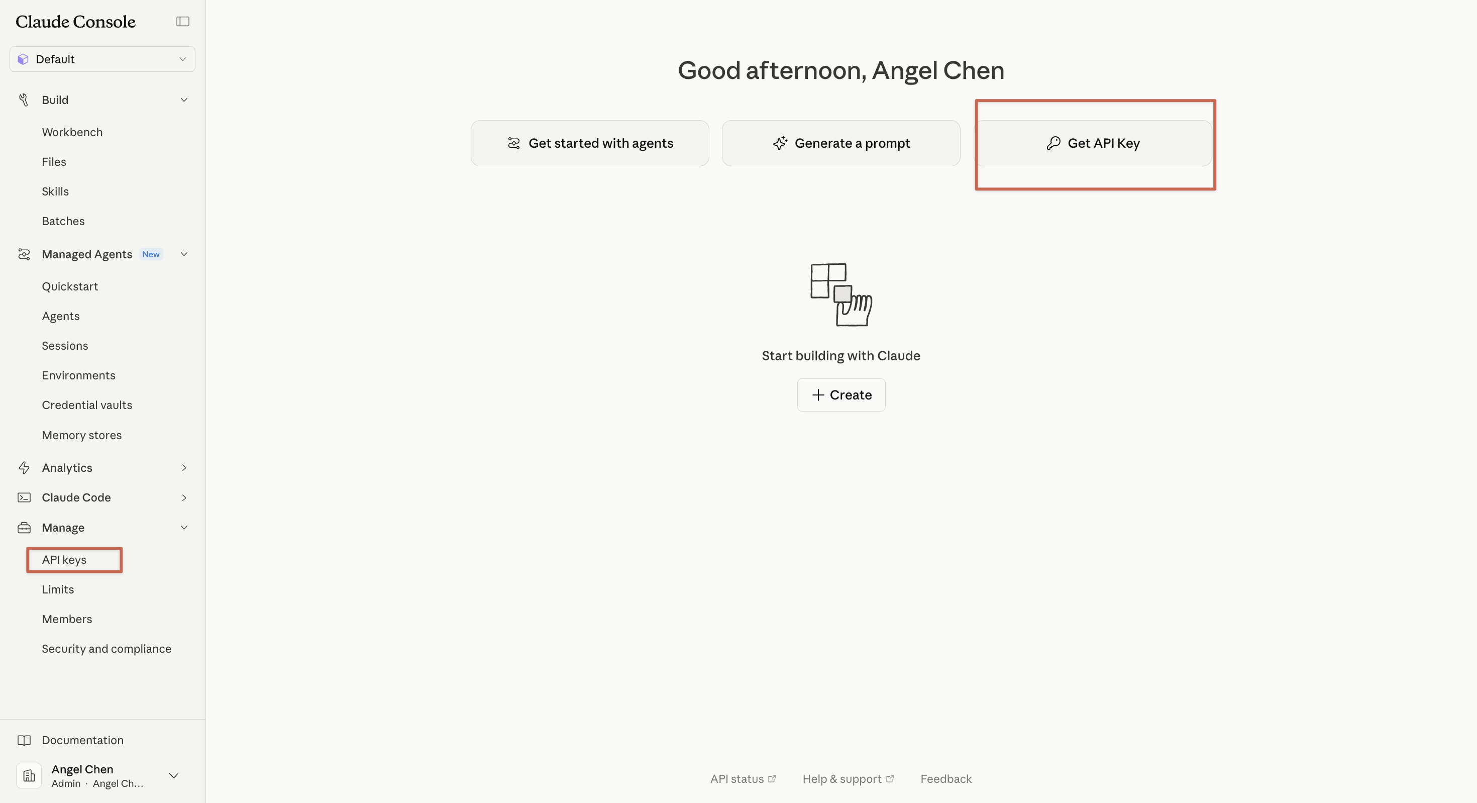 登入後,歡迎頁會看到一個 Get API Key 的按鈕,不要害怕,直接點。