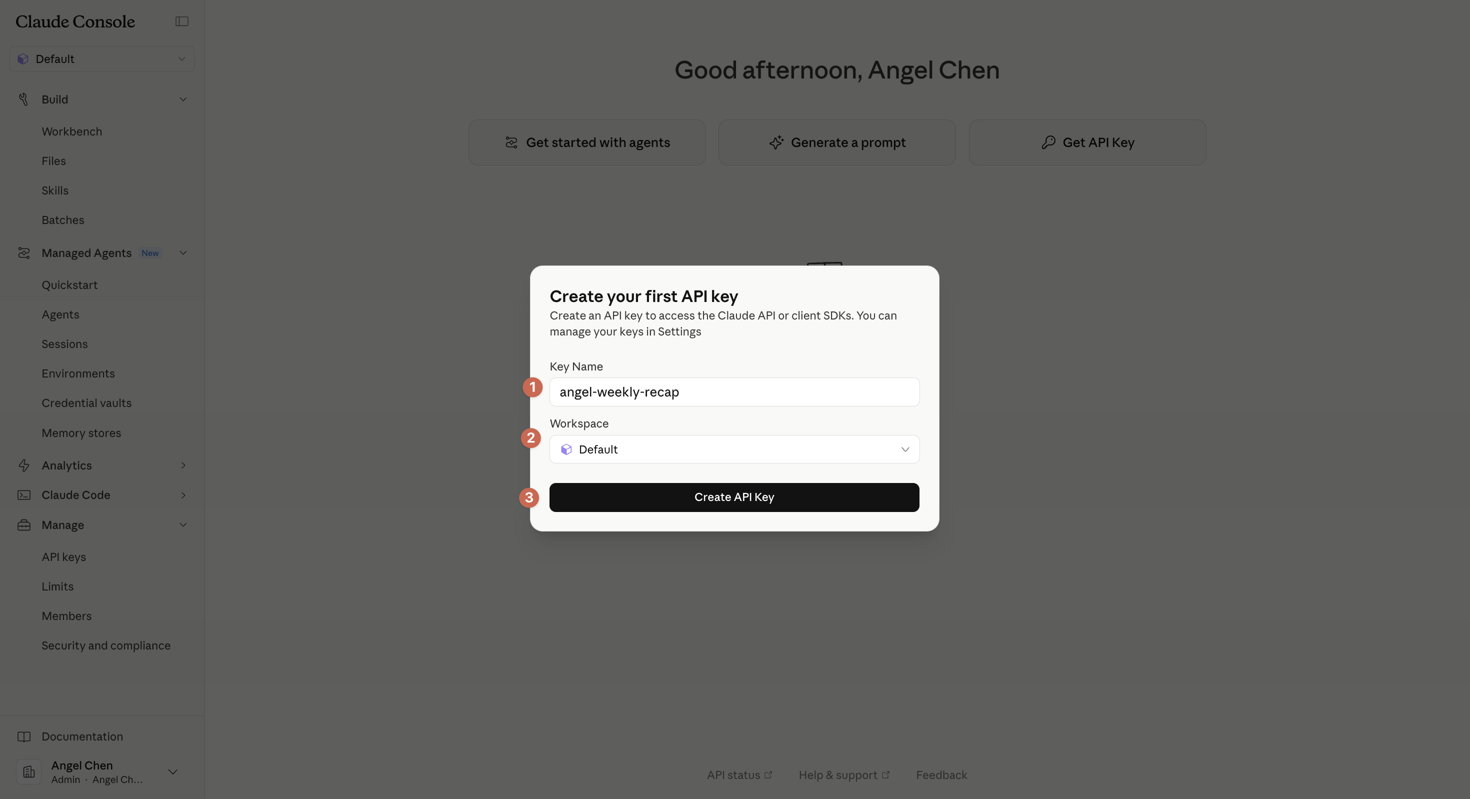 取一個名稱(建議用「這把 key 要用在哪」命名,例如 angel-weekly-recap),按確認。
